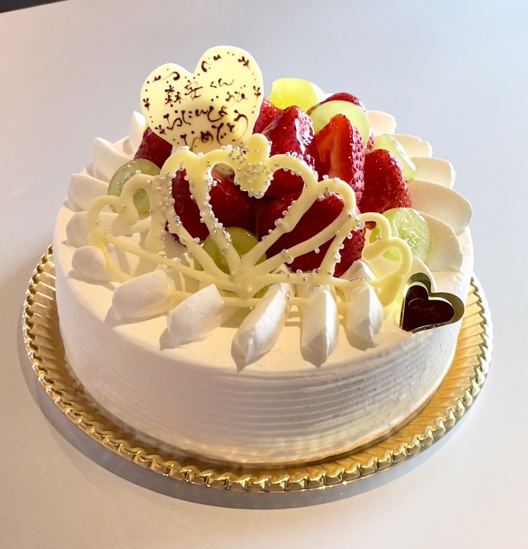 高級感あふれる装飾のホールケーキで、満面の笑みを見せてくれました。