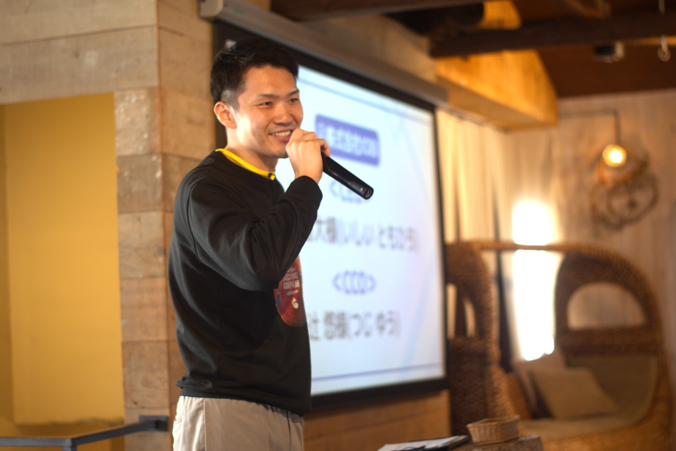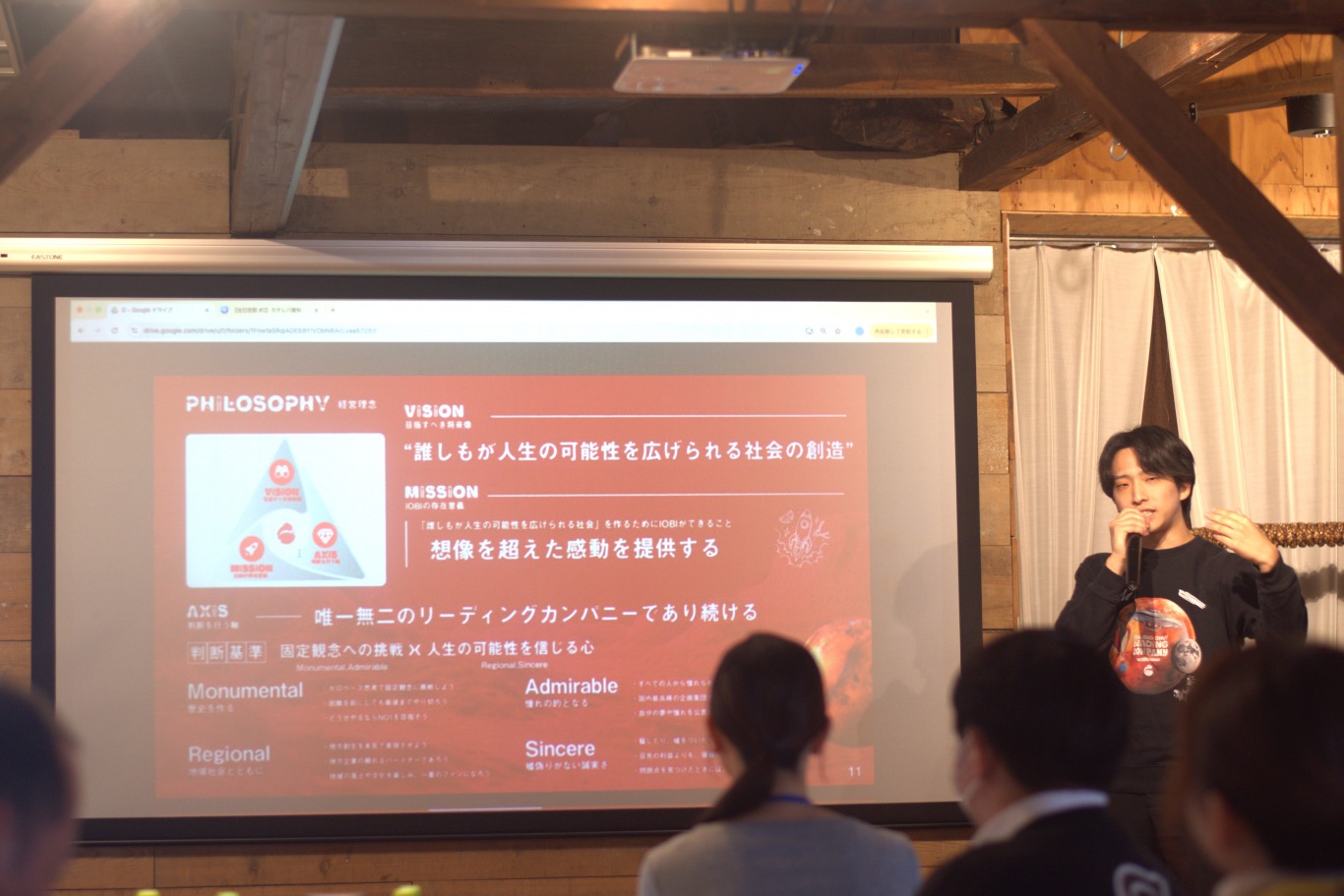 ワーク後、参加学生が前に出て発表を行い、IOBIの採用担当である森田からも7分間の企業説明会を行わせていただきました。